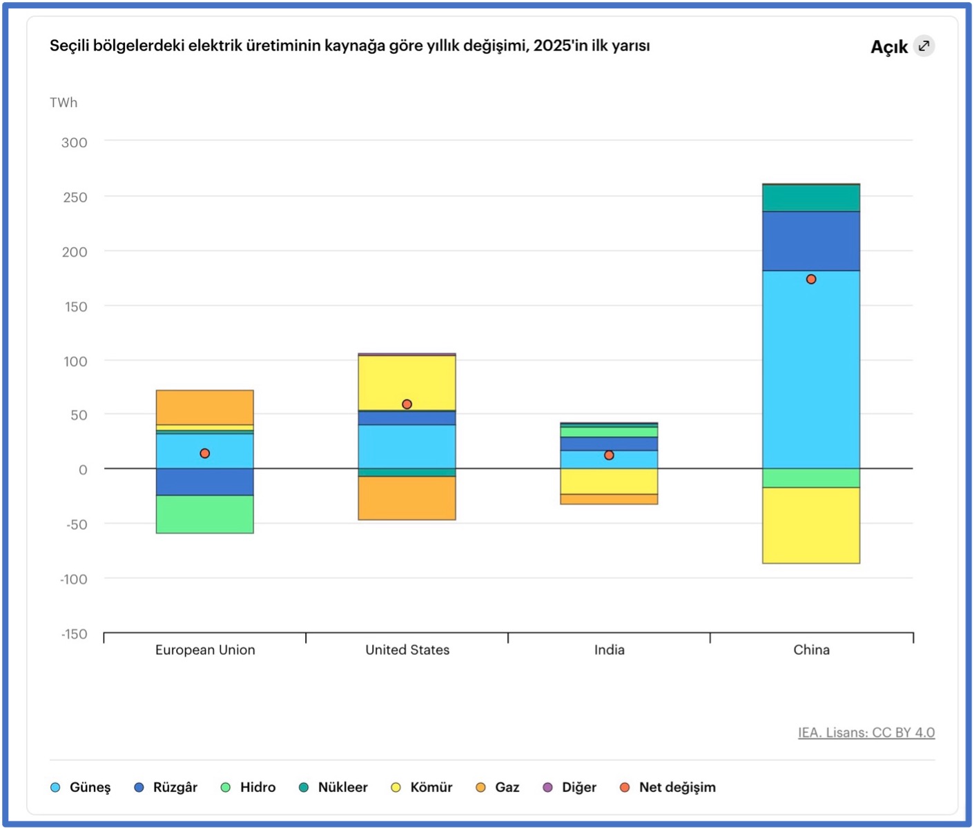 Kömürle çalışan üretim, 2025’in ilk yarısında Çin ve Hindistan’da düştü, ancak ABD ve Avrupa Birliği’nde arttı