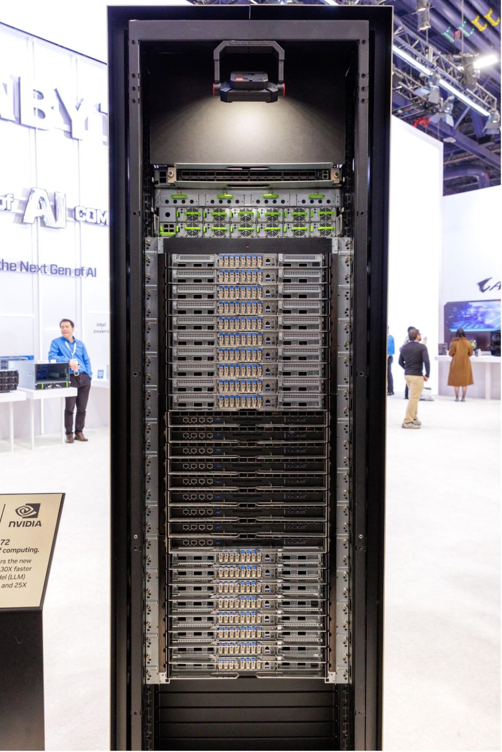 Olağanüstü güç yoğunluğunun nedeni, yapay zeka veri merkezlerinin yapısından kaynaklanmaktadır. GPU ve CPU gibi bilgisayar çiplerinin birbirleriyle hızlı bir şekilde veri alışverişi yapabilmeleri için, dikey dolap benzeri “sunucu raflarında” birbirlerine yakın bir şekilde yerleştirilirler. Bir rafa düzinelerce GPU sığdırılabilir; örneğin, NVIDIA’nın endüstri standardı NVL72 GB200, 72 GPU barındırır. 18